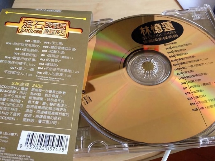 d C6t+ 林忆莲1998年《滚石24K 24Bit珍藏版金碟》,是滚石唱片在90年代末推出的一个高品质精选系列。这张专辑将林忆莲在滚石时期的经典国语金曲一网打尽,加上24K金碟的材质,在当时是发烧友和歌迷珍藏的上佳之选。