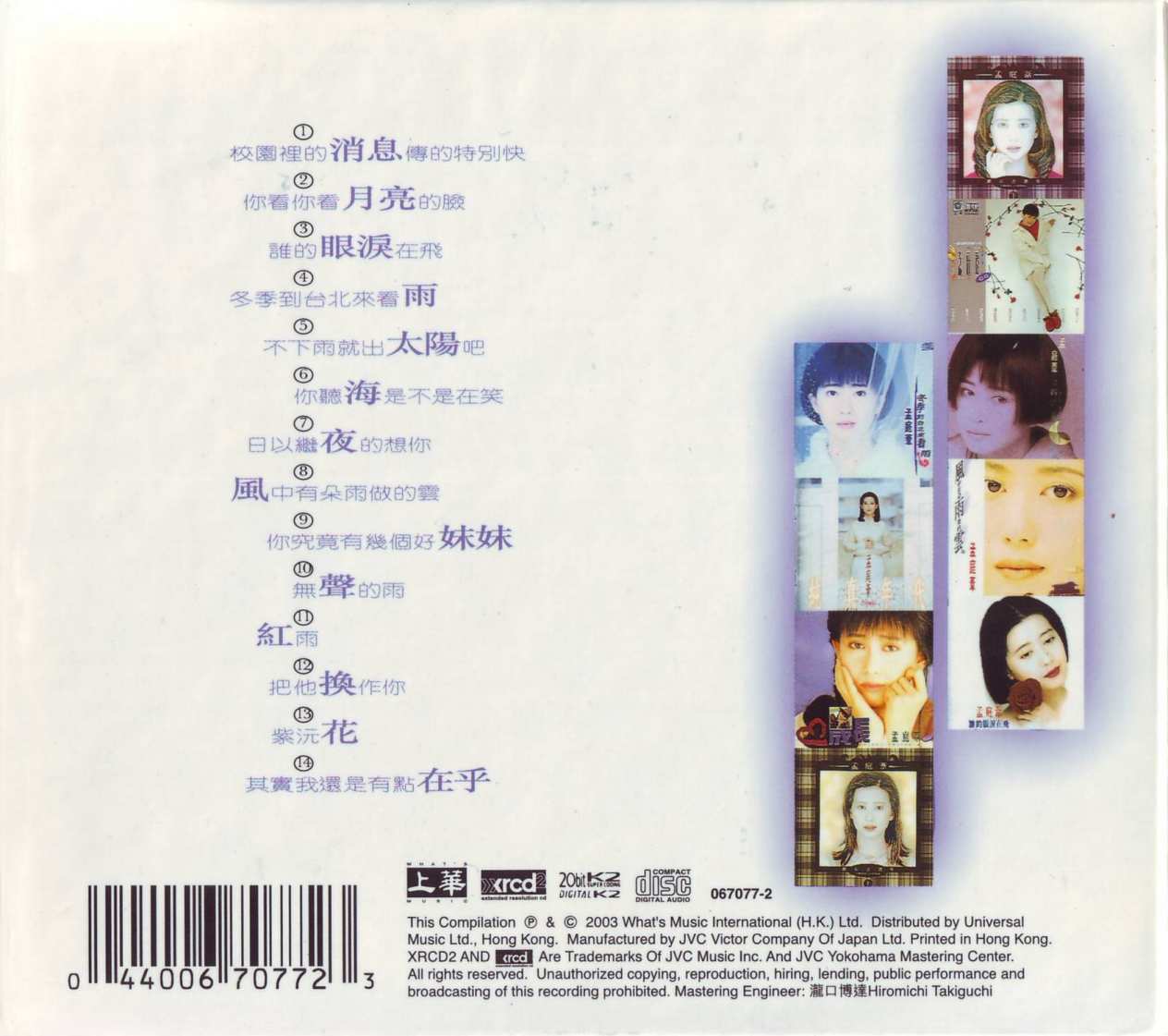 gW<6dP'v DS;\24>H 《月亮说话精选辑》不仅收录了孟庭苇“月亮公主”时期的所有代表作品,更记录了她清澈嗓音和独特气质的巅峰时刻,对于喜爱她的歌迷来说,是了解和回顾她早期音乐生涯不可或缺的一张精选集。