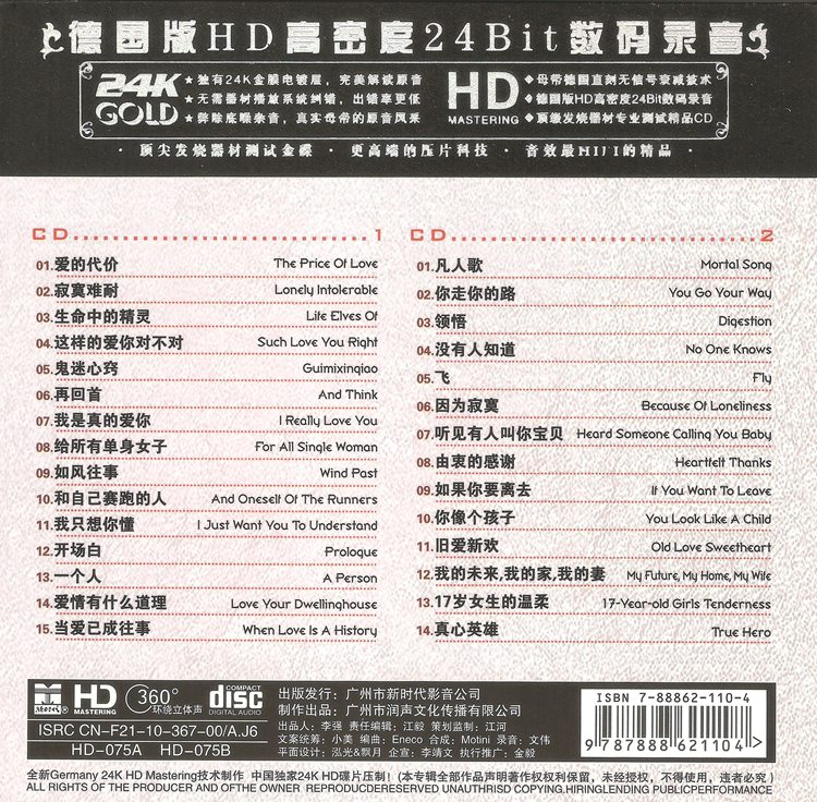 *8J0yv 这张2010年的《流行乐圣》2CD,一张通过精选和翻录方式整合的歌曲合辑。华语流行音乐教父”的创作全貌。这份歌单可以说是一张收录了他从业以来最精华作品的精选集,很值得收藏和聆听。